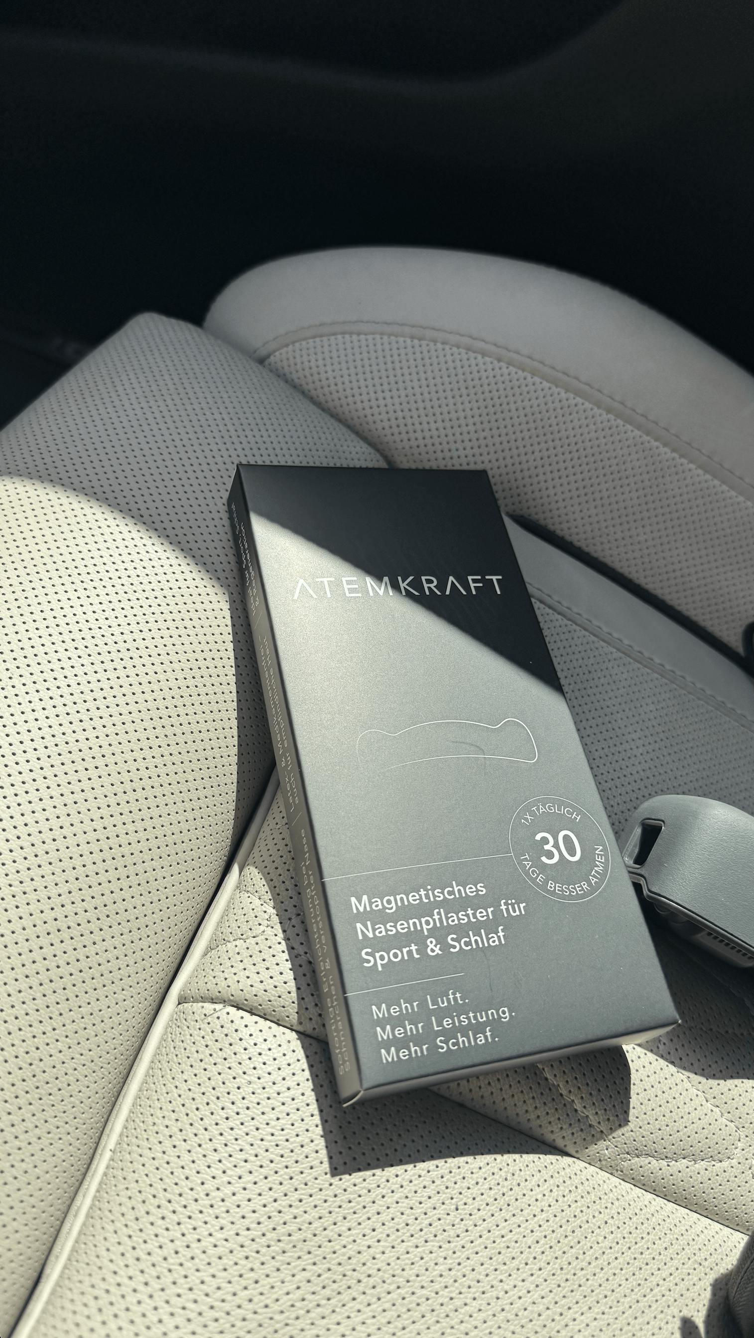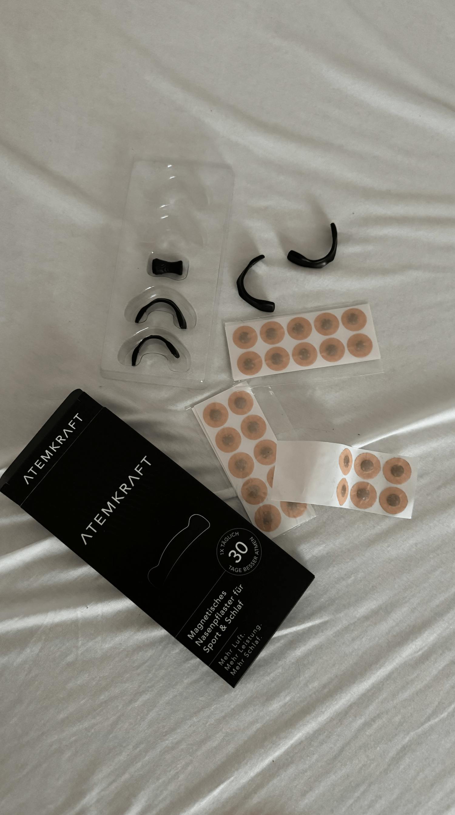 Der Kleber wurde speziell für empfindliche Haut entwickelt – er hält sicher, auch bei Bewegung, Schweiß oder über Nacht. Gleichzeitig lässt er sich rückstandslos und hautschonend entfernen. Der Magnetbügel rastet präzise ein und bleibt stabil an Ort und Stelle – ohne zu verrutschen. Egal ob beim Training, Schlafen oder im Alltag: AtemKraft sitzt, ohne zu nerven.